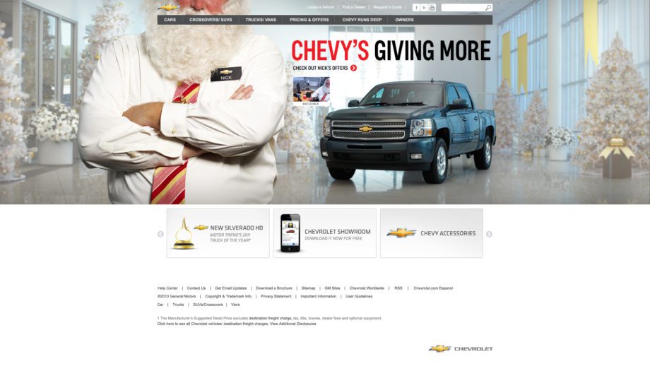 What if there was a Chevy dealer who looked a lot like Santa Clause, but wasn’t? Or was he? Customers and fellow employees alike, were never sure. I mean, even his name was Nick. It proved to create some genuinely funny moments that made the Chevy dealership experience more joyful. This campaign ran for three years and involved television, radio, print, point-of-purchase, digital, and social. This is how we carried it out in the retail digital space.